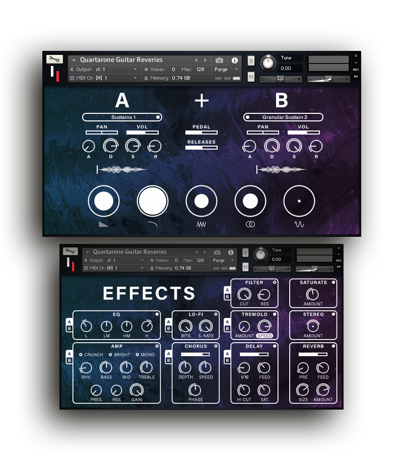 Quartarone Guitar Reveries主要通过组合两个声音源来工作,以创建新颖有趣的声音。