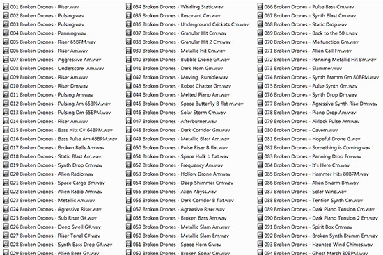 我们设计的Tesseract适合电影制片人和音乐制作人。电影制片人可以使用总共50条音乐曲目,这些音乐曲目也分为各自的部分以及493种单独的声音效果。音乐制作人也可以使用所有这些声音:所有音调都带有键标记,所有循环都带有BPM标记。构造套件包括单独的杆,可以将其拖放到您选择的DAW或采样器中,此外,它们还包含所有MIDI文件。